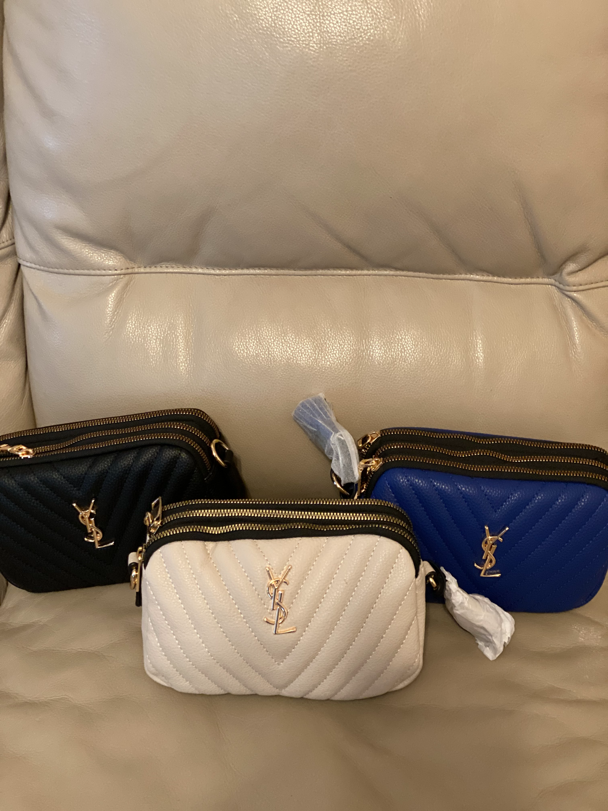 YSL 3 Compartment Crossbody Leather Bag
